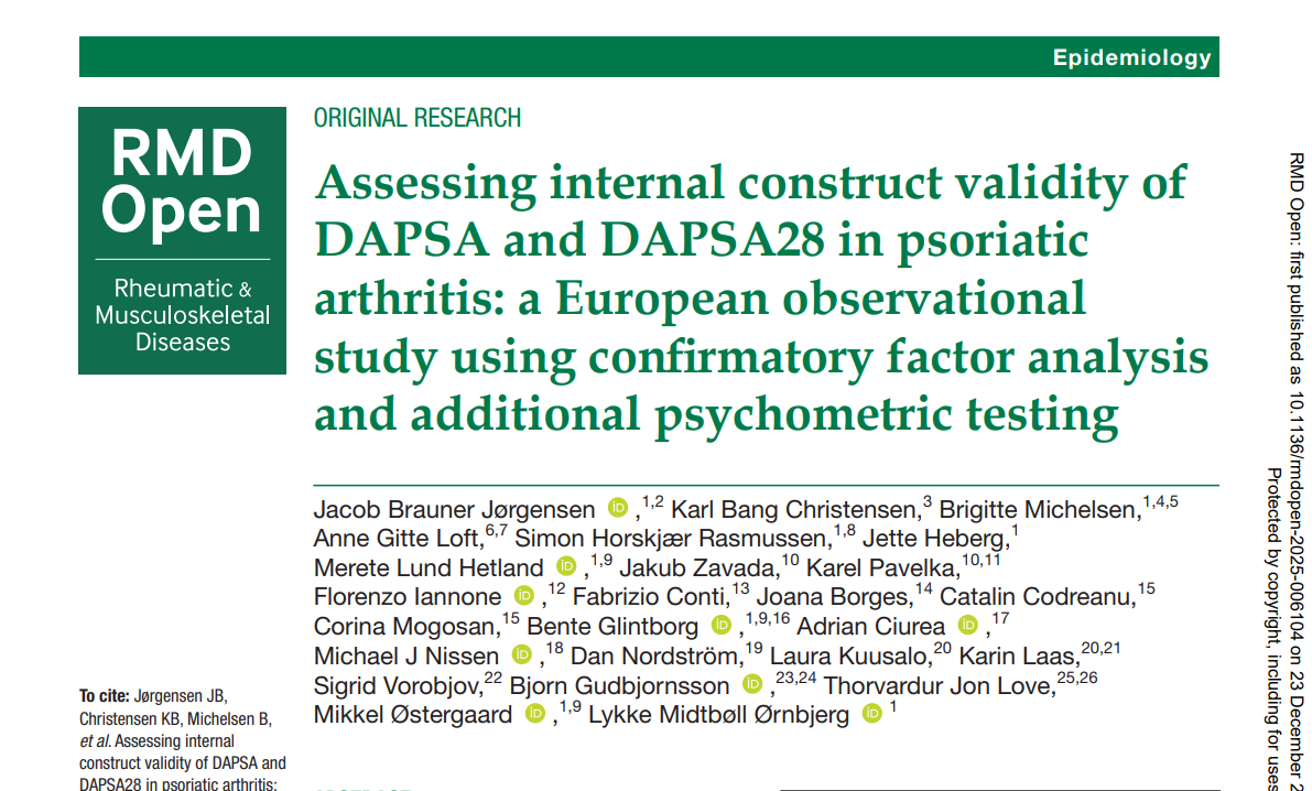 Assessing internal construct validity of DAPSA and DAPSA28 in psoriatic arthritis: a European observational study using confirmatory factor analysis and additional psychometric testingAssessing internal construct validity of DAPSA and DAPSA28 in psoriatic arthritis: a European observational study using confirmatory factor analysisAssessing internal construct validity of DAPSA and DAPSA28 in psoriatic arthritis: a European observational study using confirmatory factor analysis and additional psychometric testing